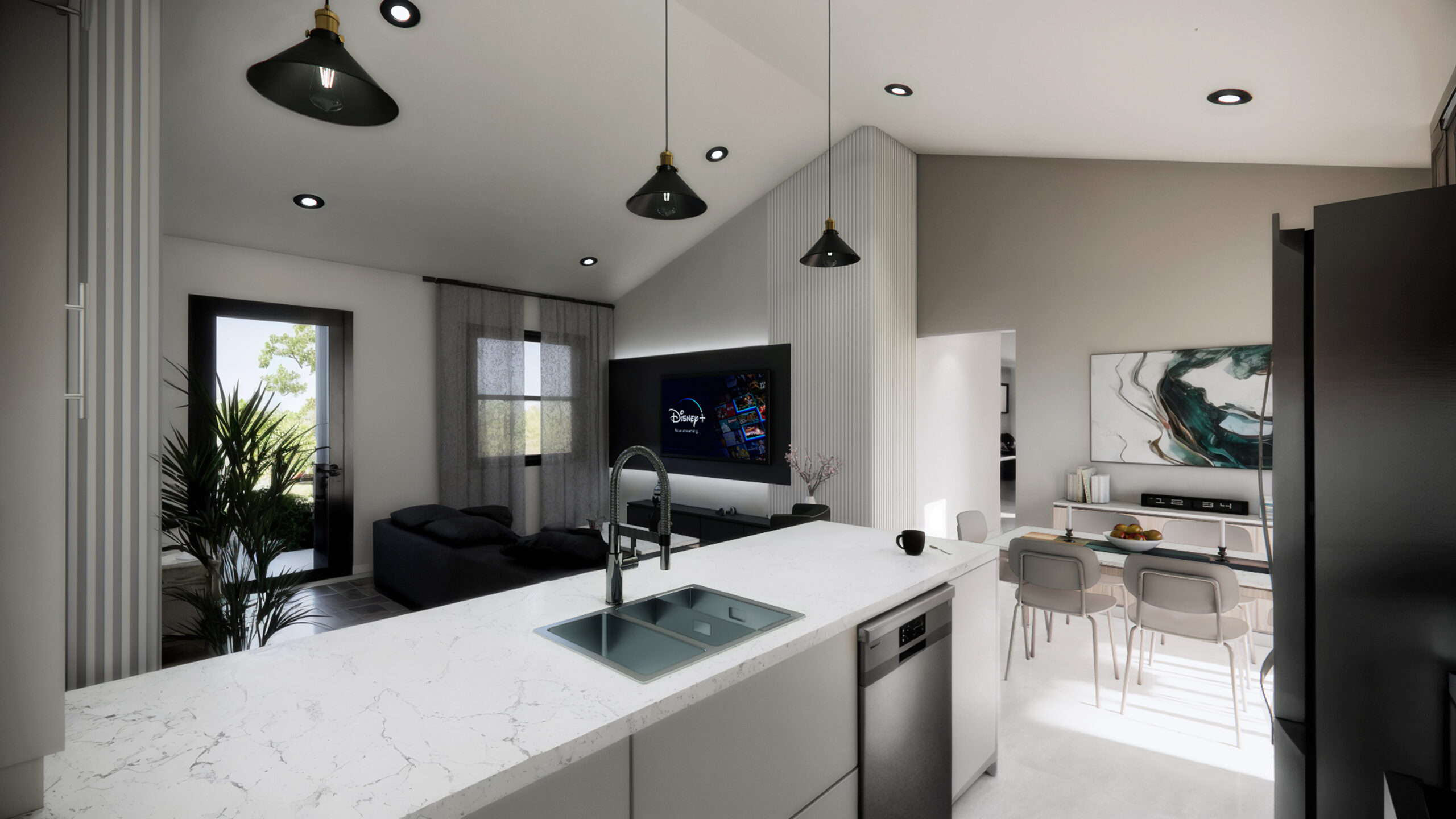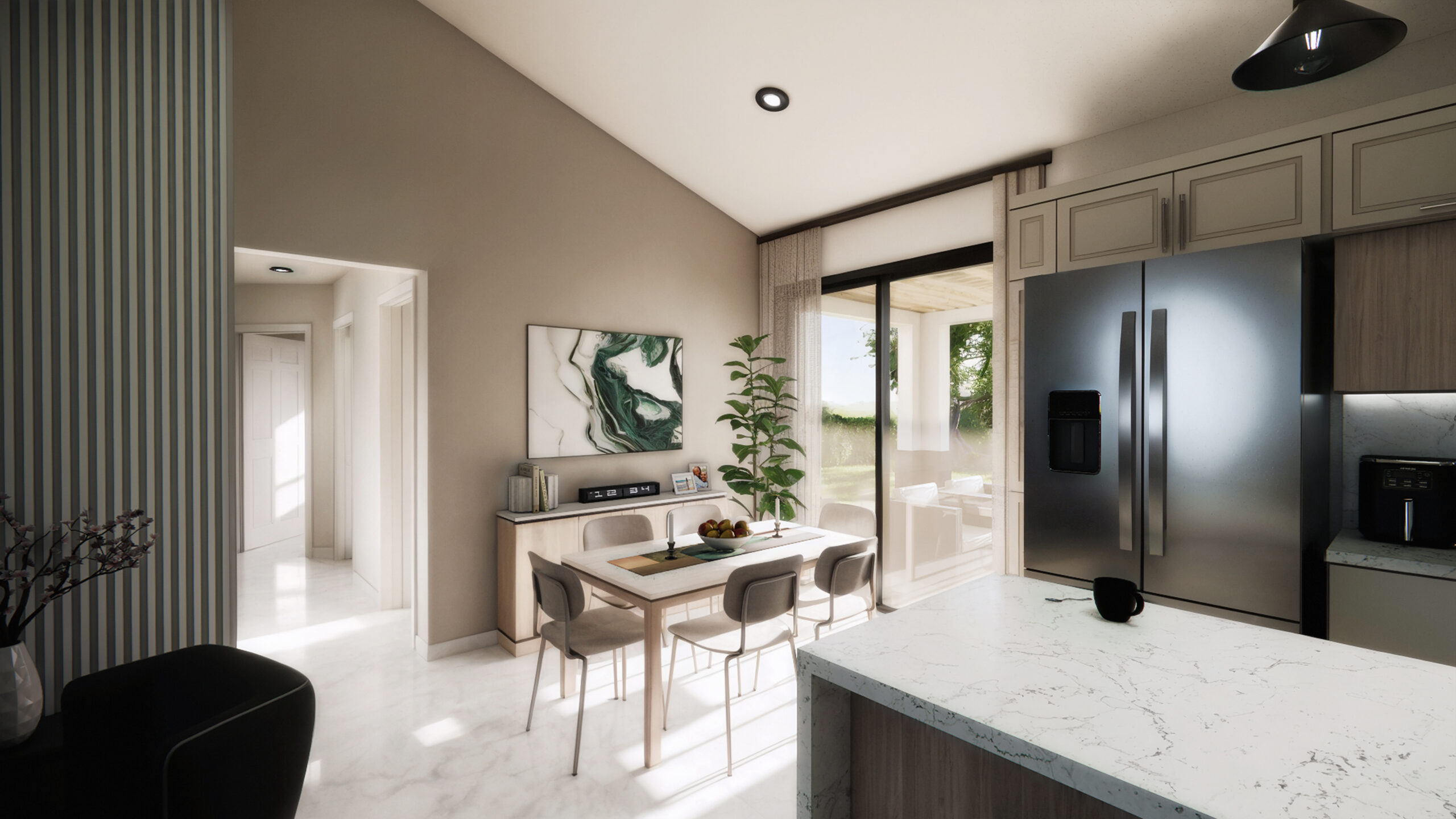 Una casa moderna y funcional, ideal para una familia joven. Ofrece 4 dormitorios (principal en